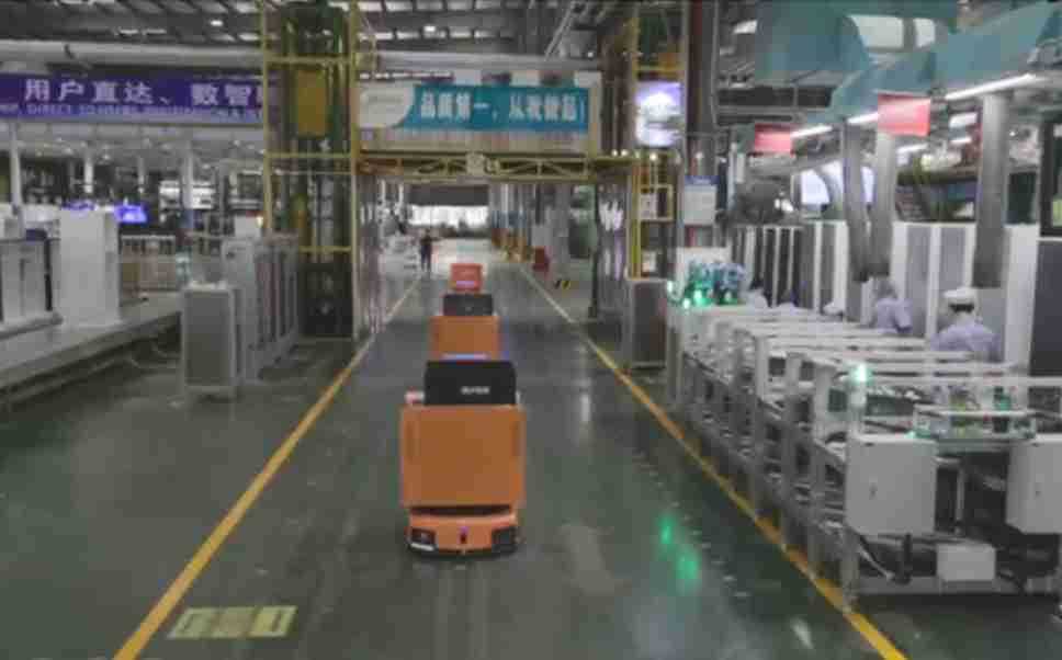 为车载冰箱物流配送打造的智能解决方案,,包含产中物流通过潜伏举升AMR搬运至线边,,产后成品物流智能仓储,,,流程包含产中物流智能齐套入库,,线边安灯叫料AMR智能配送至线边,,,成品入库、、、、出库,,,,通过无人堆高车机器人,,,,智能仓储管理替代人工作业管理,,,实现更高存储、、、更高效率、、、更具柔性化的解决方案。。。。